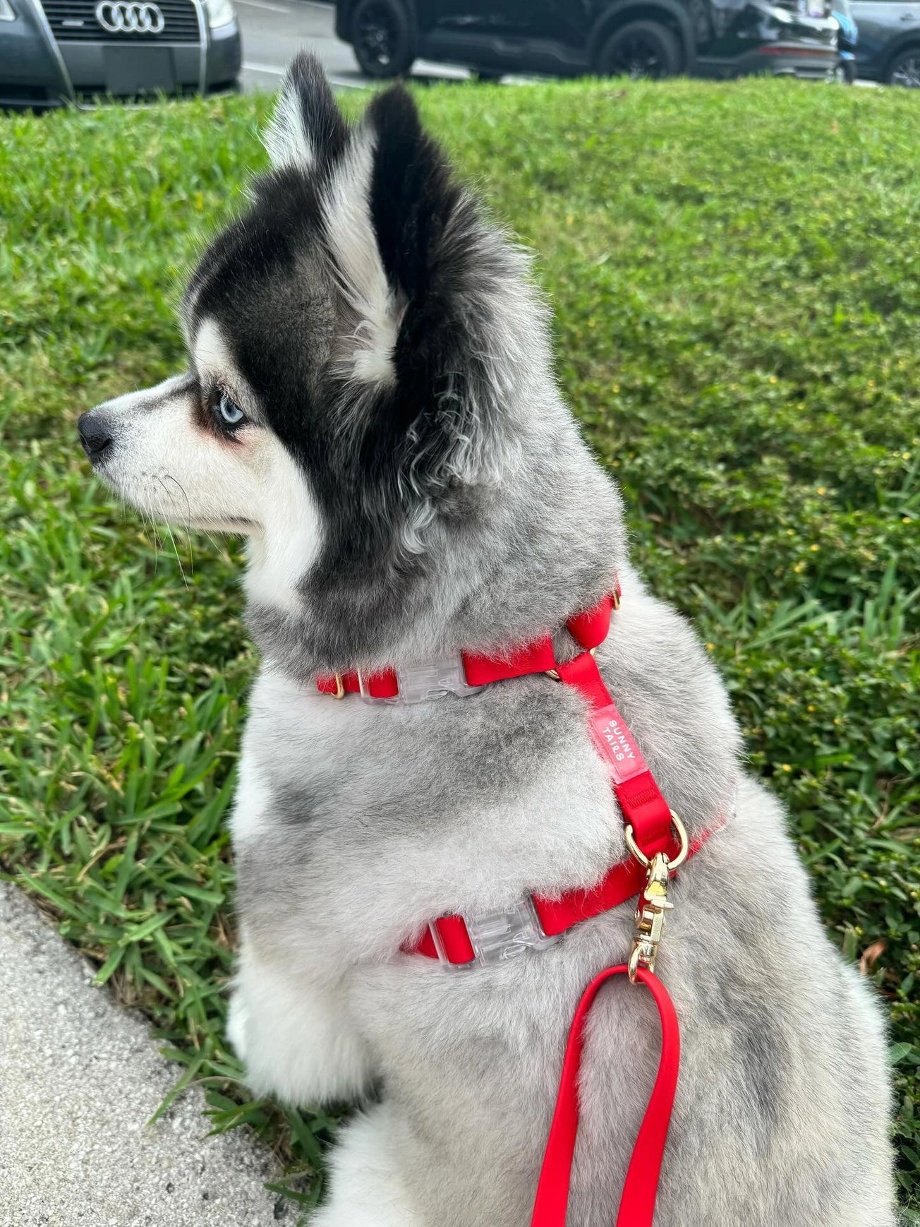 Un harnais waterproof rouge, confortable et réglable pour les promenades quotidiennes.