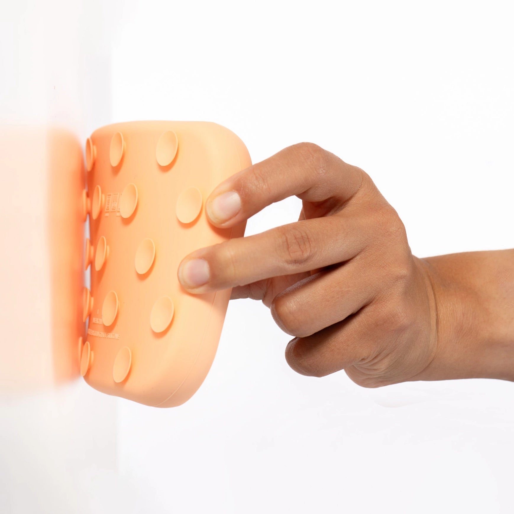 • Des ventouses pour une fixation au mur ou sol (parfait pour le bain !)