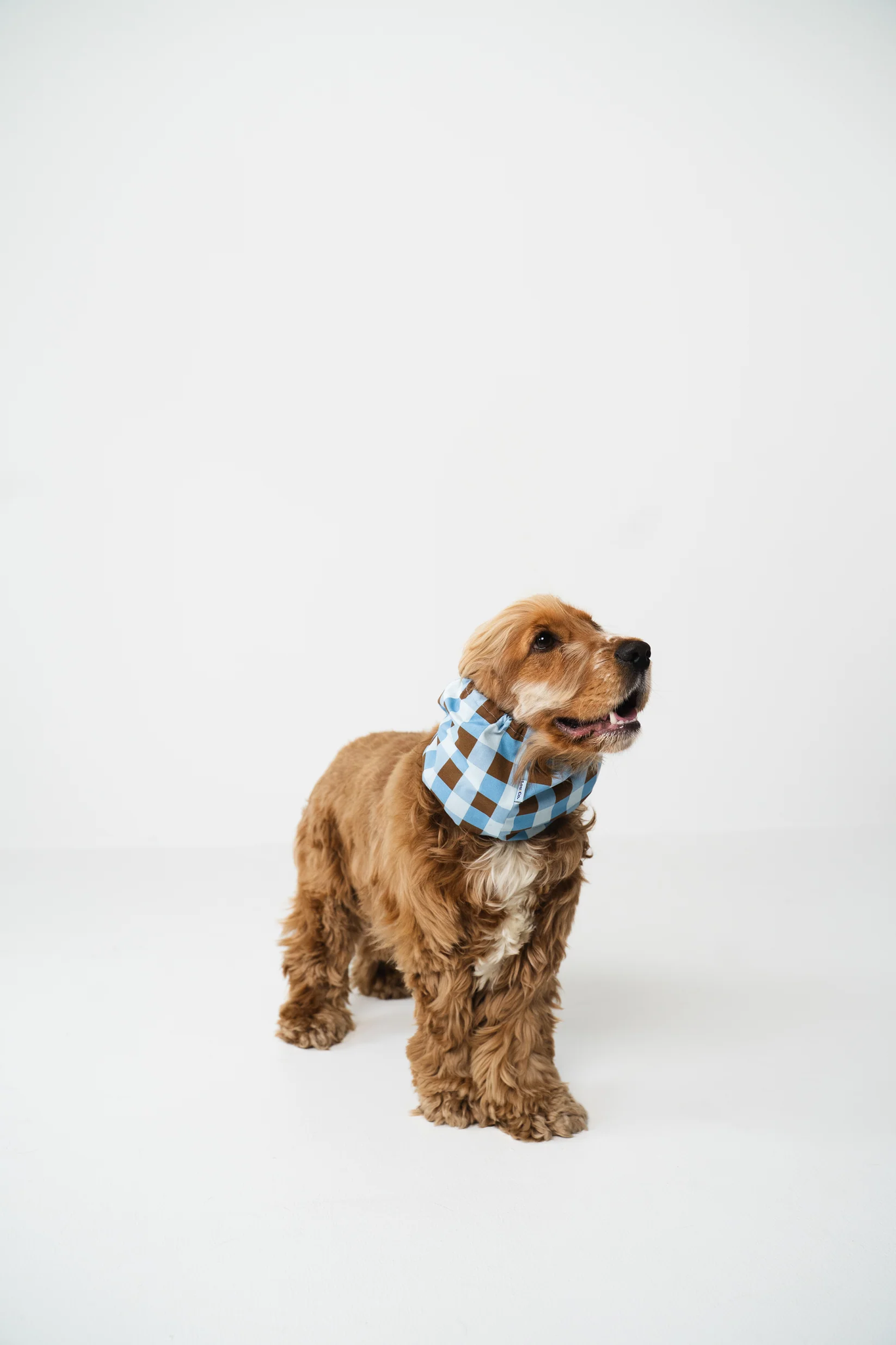 Un snood bleu à carreaux pour garder le cou et les oreilles de ton chien au chaud et à l’abri des saletés et épillets.