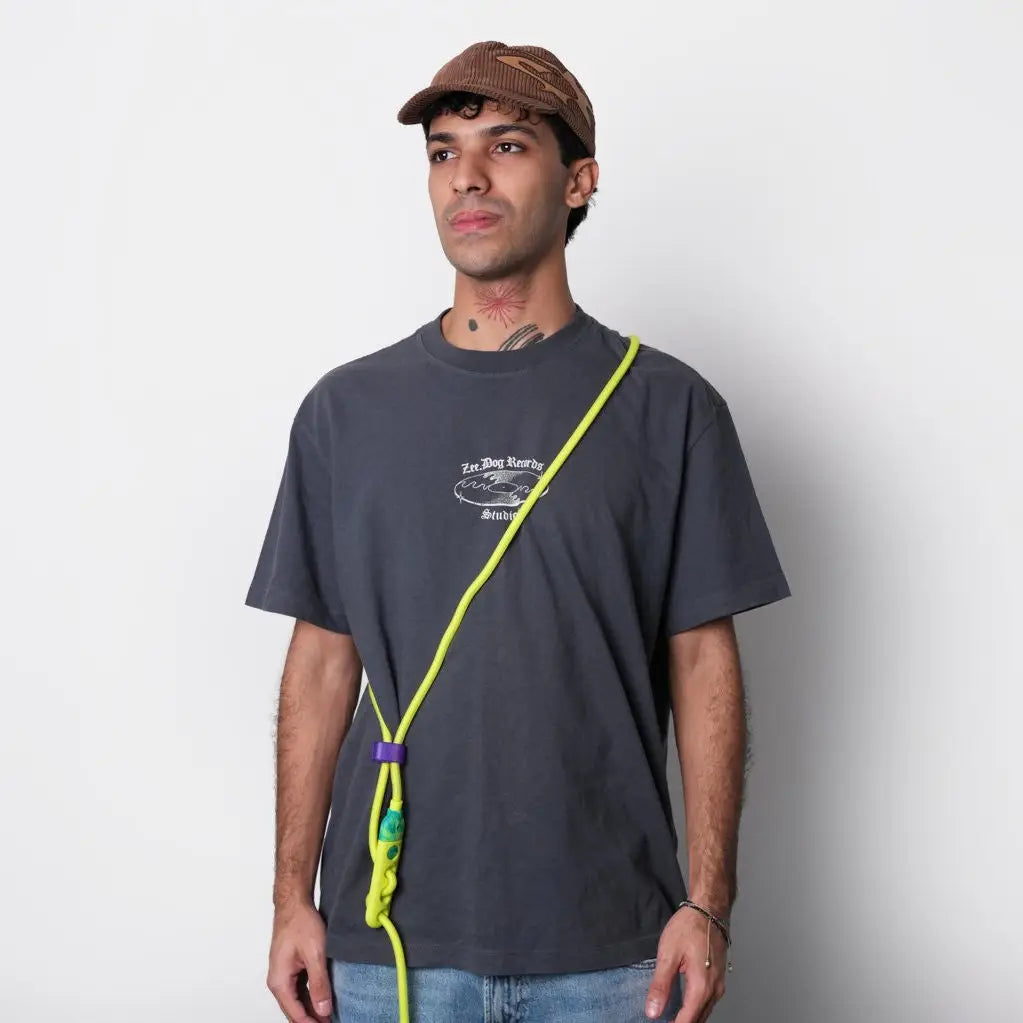 Une laisse imperméable mains libres fluo avec clip pratique pour des balades visibles et détendues.
